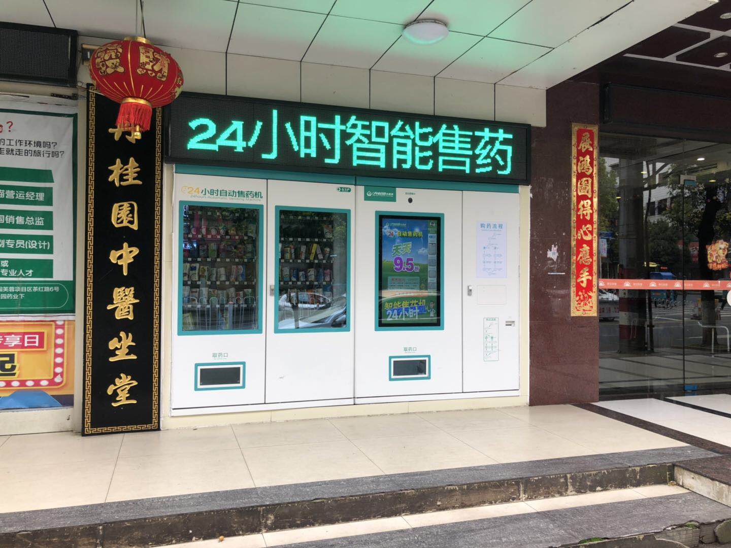 由无锡智发电工生产的24小时智能售药系统在湖南郴州桂阳的丹桂园大药房调试完成,投入使用,周边老百姓生活又增加了一个健康保障!