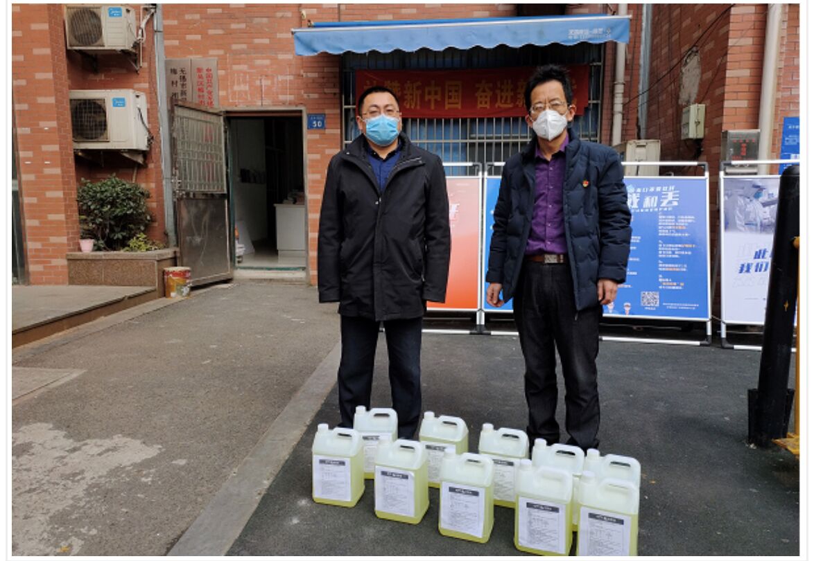 2月7日无锡智发电工科技有限公司民建无锡医药总支一支部冯伟江为抗击新冠肺炎疫情捐赠10桶84消毒液共50公斤,为无锡市新吴区梅村街道香梅二社区使用,助力社区做好新型冠状病毒感染的肺炎疫情防控工作。