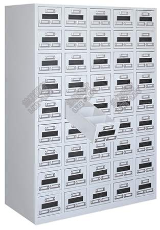 ◆45个抽屉,每个抽屉中间隔成二格(或三格),可放90味(或135味药);