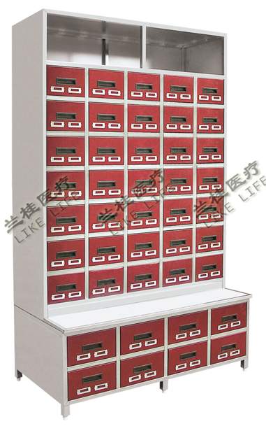 ◆采用优质不锈钢方管为骨架,上、侧、背面均为优质不锈钢板,抽屉采用冷轧钢板仿红木喷塑,内部全封闭、防鼠、防串药; |