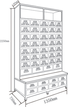 ◆上部小抽屉内固定隔板隔成两腔(或放置塑料斗两个)共可放置70味药; |