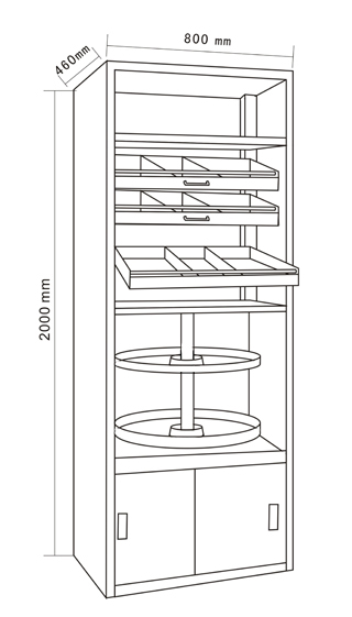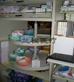◆上部药盘层距可自行调节,中间配置传递窗,操作便捷不易出错,下部柜子可放置贵重药品;