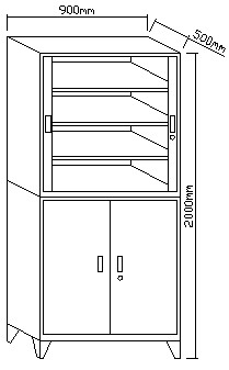 ◆上下两节分体式结构,每节放置层板三层,层板间距可任意调节;