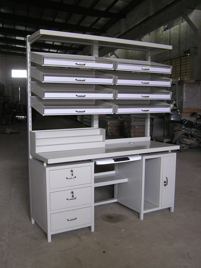◆ 药盘可斜放或平放,层距可任意调节;可调式调节脚,使调剂台放置平稳;