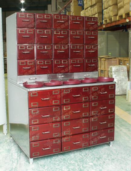 ◆抽屉表面采用实木制作,表面烤漆;抽屉内胆分成两格,每格内配有活动隔片,大抽屉分为为四格,小抽屉分为两格,每个抽屉配有4个药名标签框; |